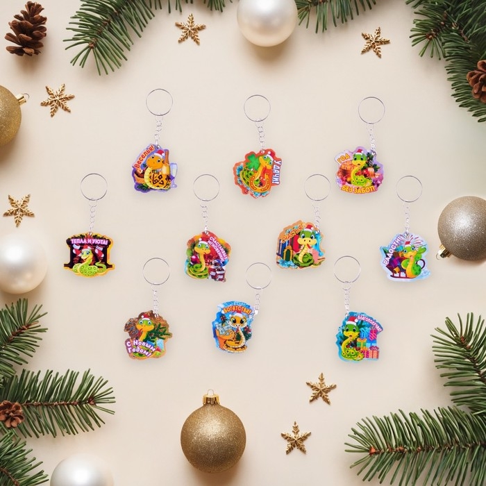 Набор брелоков новогодних "Новый год - 1" символ года, 10 штук