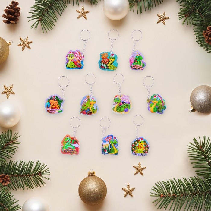 Набор брелоков новогодних "Новый год - 3" символ года, 10 штук