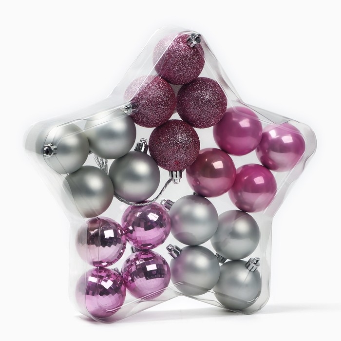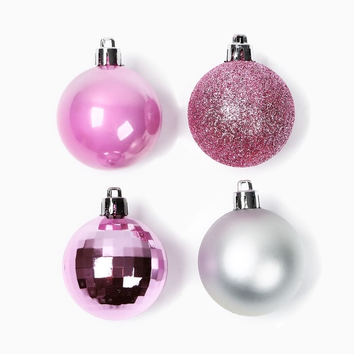 Ёлочные шары новогодние, на Новый год, d=5 см, 20 шт., цвет розовые и серебристый