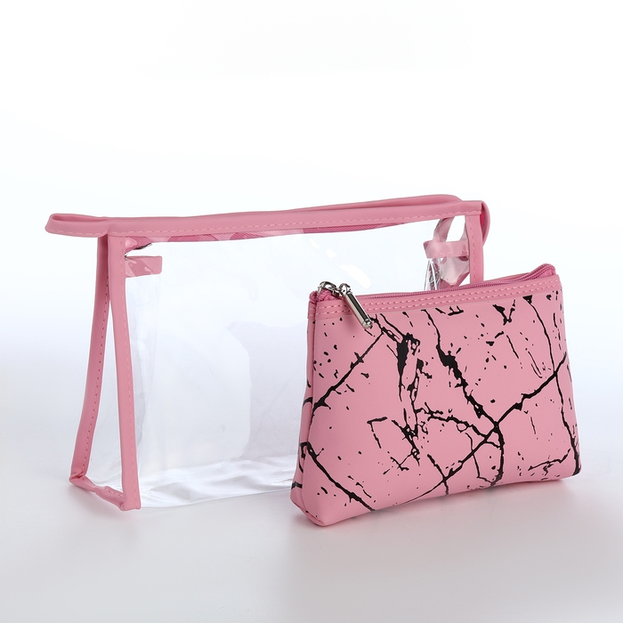 Набор косметичек 2 в 1 на молнии, цвет розовый