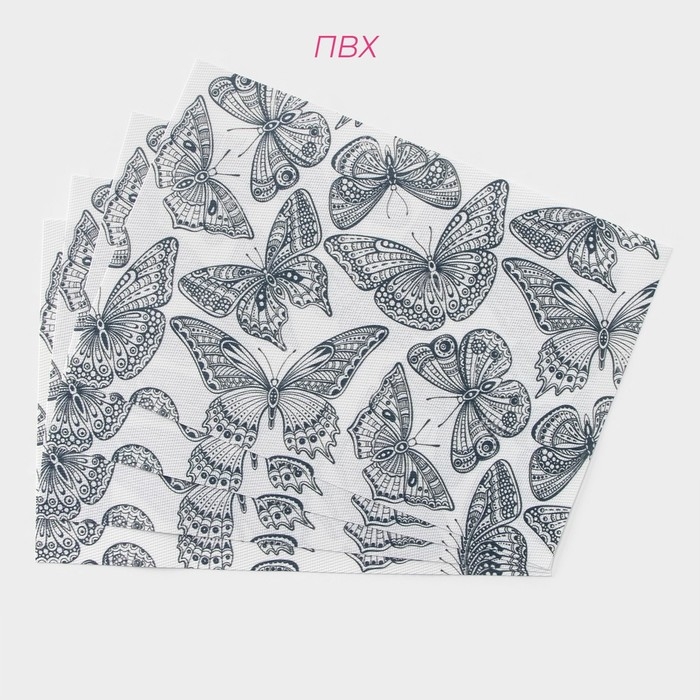 Салфетки сервировочные на стол Доляна «Бабочки», 4 шт, 45×30 см