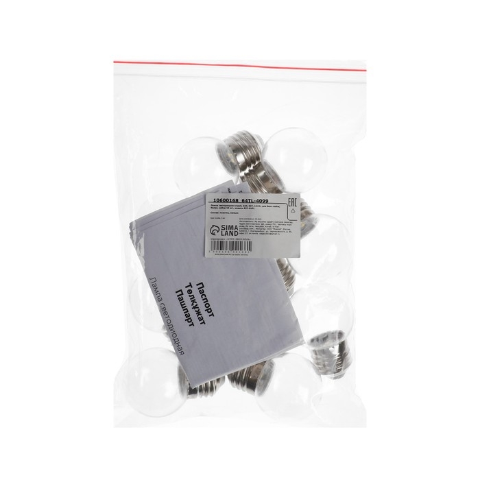 Лампа светодиодная строб, G45, E27, 1.5 Вт, для белт-лайта, белая, набор 10 шт.