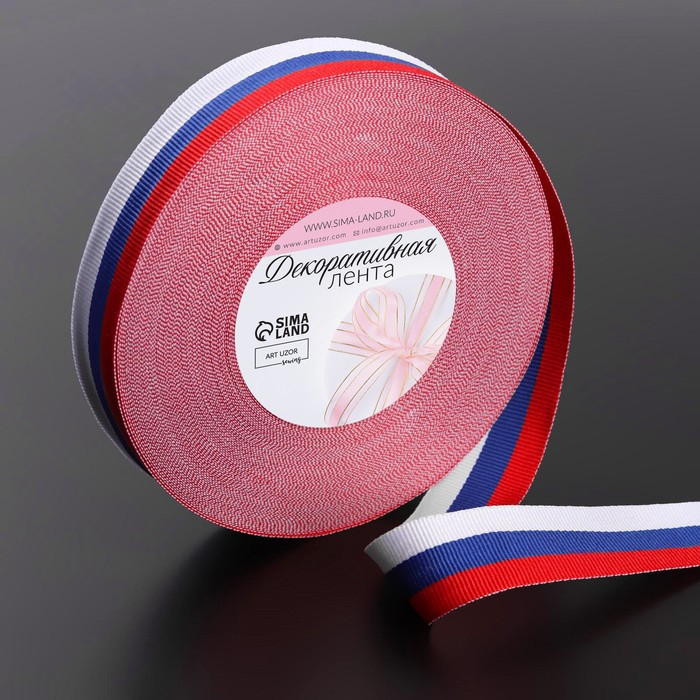 Лента репсовая «Триколор», двусторонняя, 25 мм, 23 ± 1 м