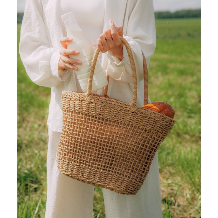 Сумка женская SL Home, ручное плетение, хлопок, длина ручек 18,5 см, 40×27 см
