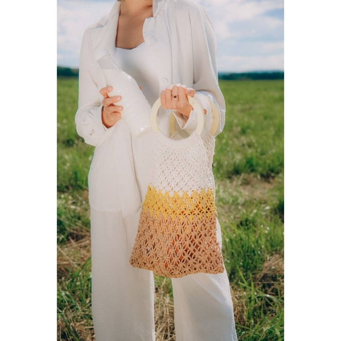 Хозяйственная сумка ручного плетения — это стильная альтернатива одноразовым полиэтиленовым пакетам. Легко помещается на плечо, предоставляя свободу движений и комфорт при использовании. Универсальный аксессуар, который пригодится в быту. Сумка выполнена из экологически чистых материалов, что делает её безопасной для здоровья. Благодаря стильному дизайну и удобной ручке, сумка станет отличным дополнением к вашему образу.