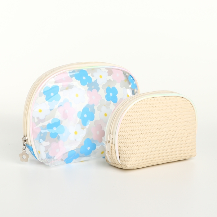 Набор косметичек 2 в 1 на молнии, цвет бежевый