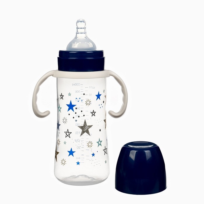Бутылочка для кормления Ø50мм ШГ, «Звезды», 330мл, +3мес., цвет темно-синий, ручки молочные 984417