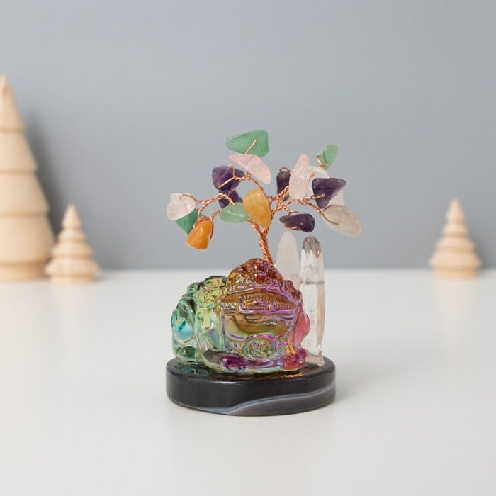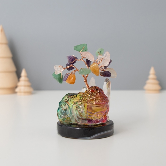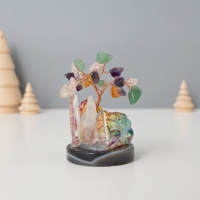 Сувенир стекло, металл "Деревце под защитой льва" 18 камней, цветной 5,5х5,5х9 см