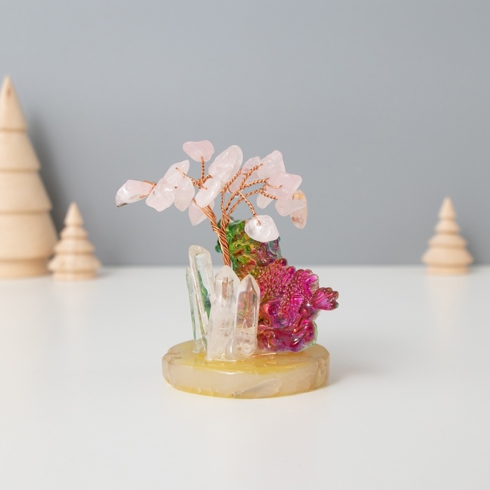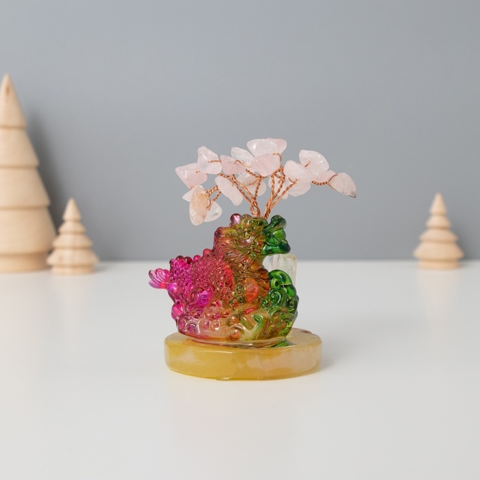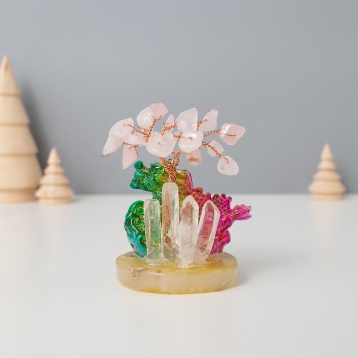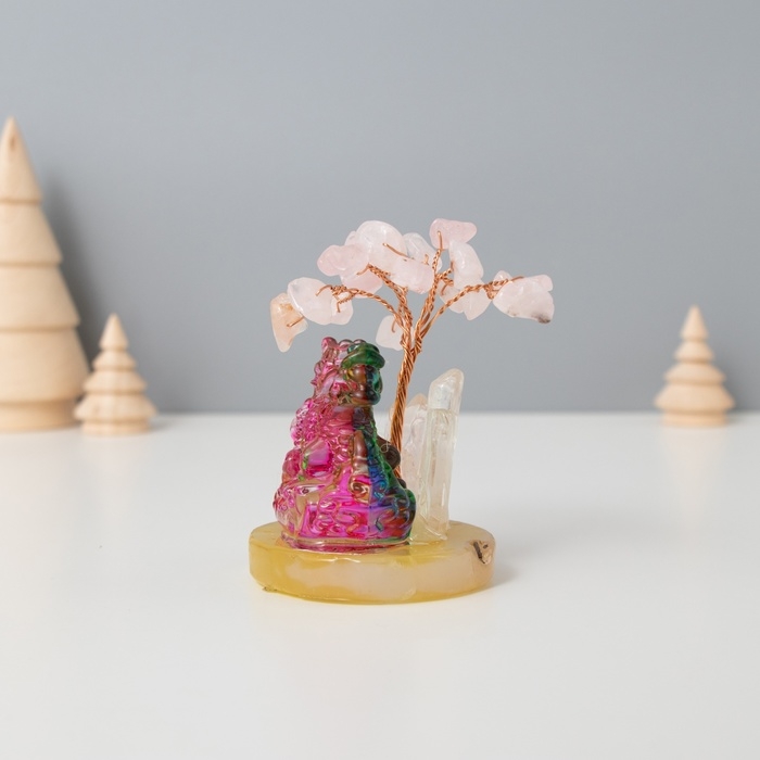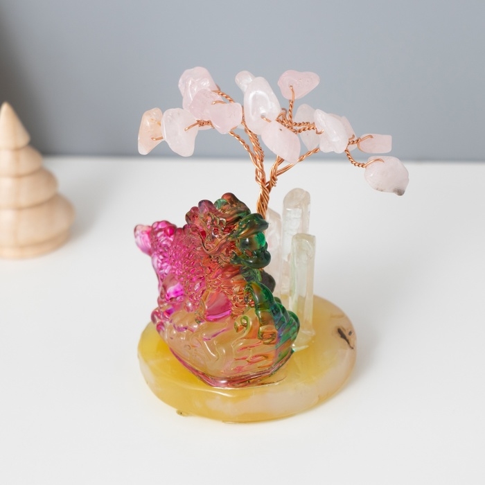 Сувенир стекло, металл "Деревце под защитой дракоши" 18 камней, розовый 5,5х5,5х9 см