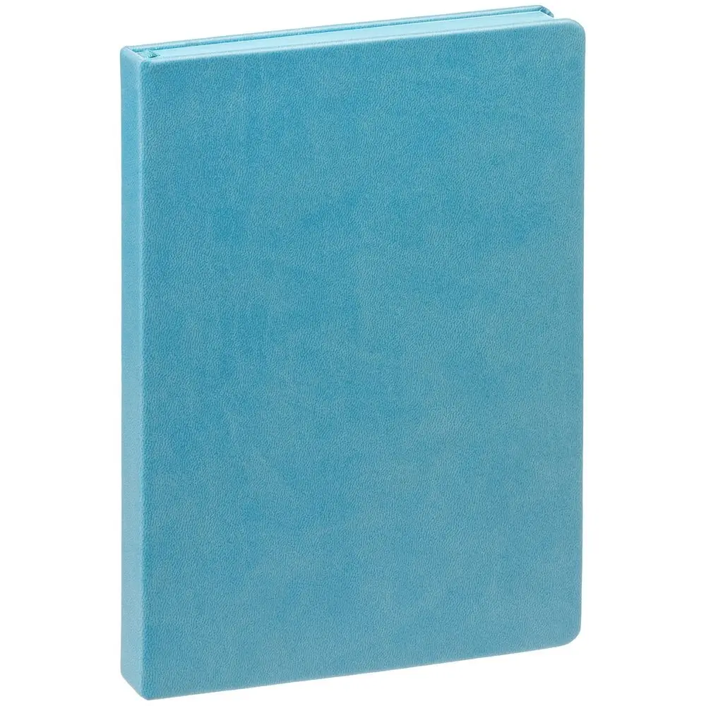 Ежедневник с твердой обложкой и тонированным обрезом. Выполнен из материала Latte, голубой, дополнен ляссе в цвет обложки.