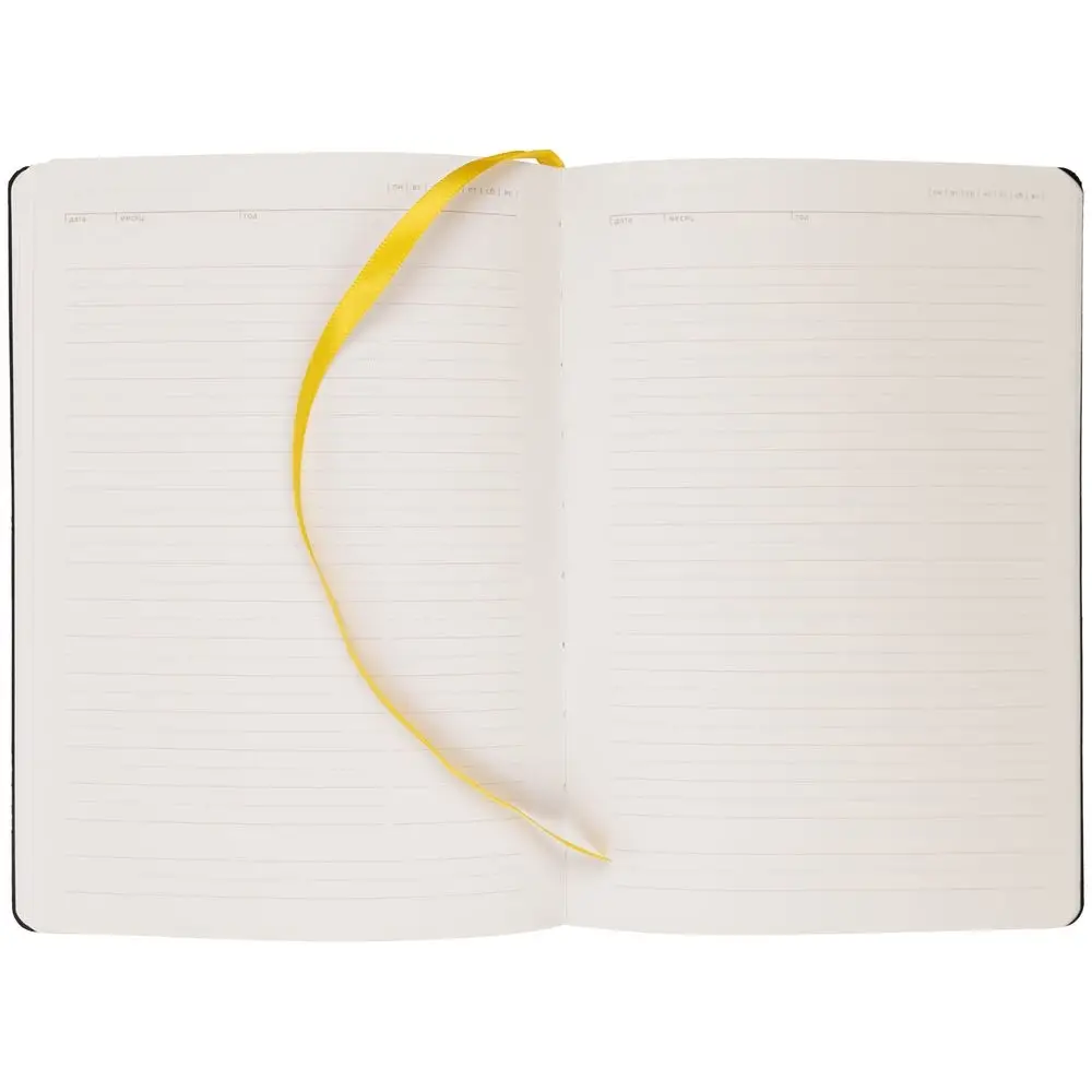 Ежедневник с гибкой обложкой, выполнен из материала Latte, желтый, дополнен ляссе в цвет обложки.