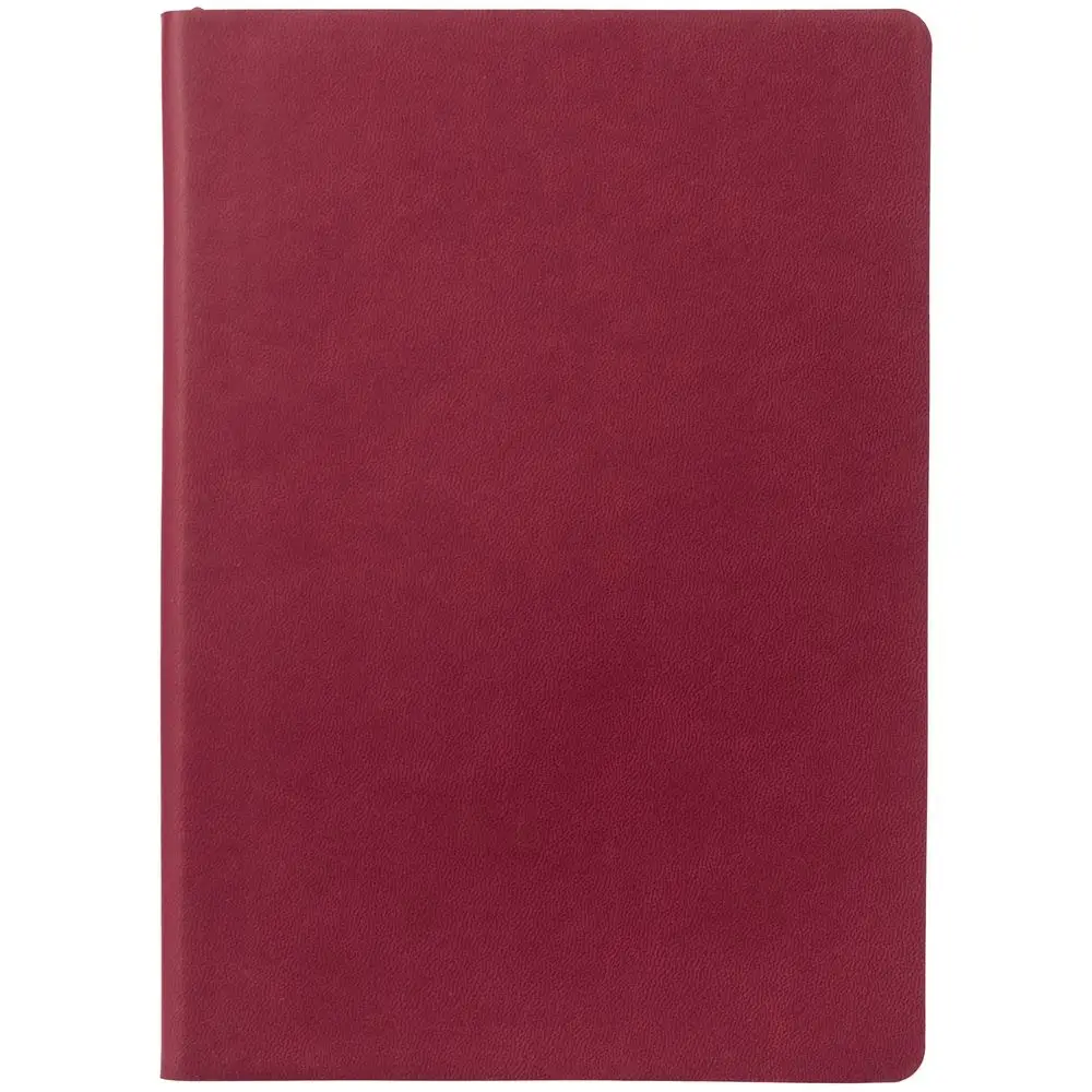 Ежедневник с гибкой обложкой, выполнен из материала Latte, бордовый, дополнен ляссе в цвет обложки.