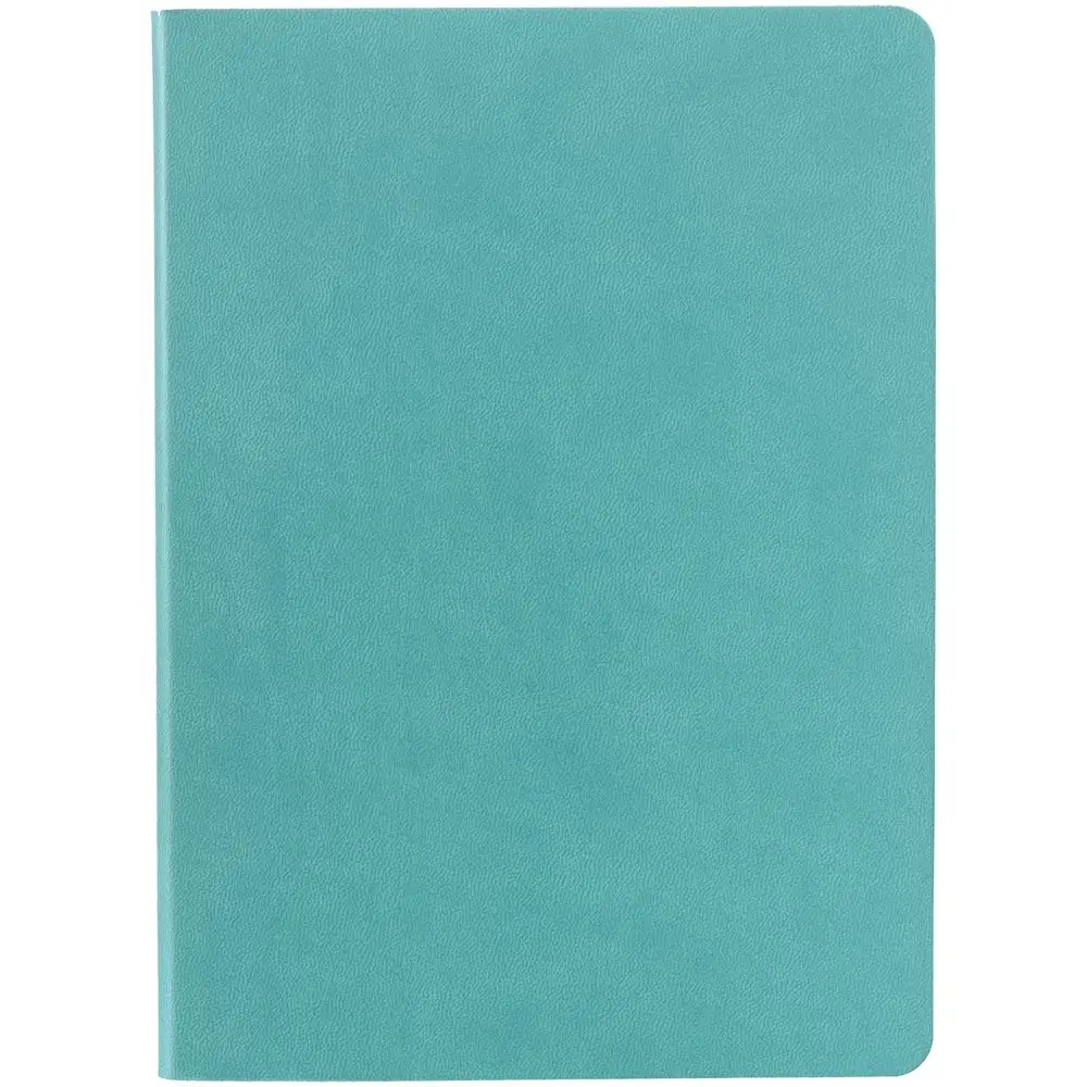 Ежедневник с гибкой обложкой, выполнен из материала Latte, бирюзовый, дополнен ляссе в цвет обложки.