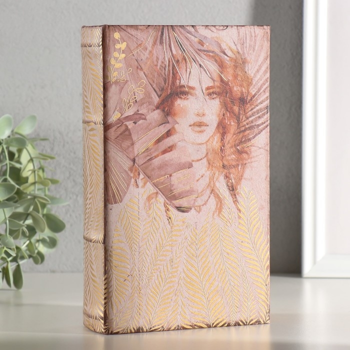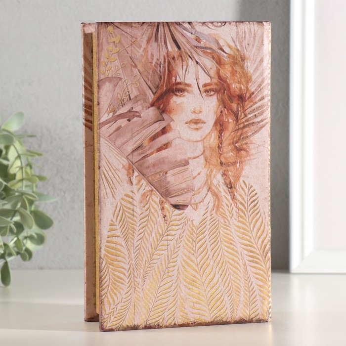Сейф-книга дерево, кожзам "Девушка в листьях" золото тиснение 21х13х5 см