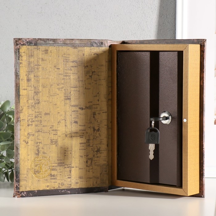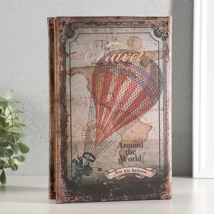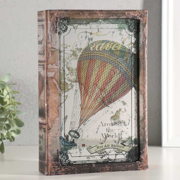 Сейф-книга дерево, кожзам, зеркало "Полёт на воздушном шаре" 24х16х5 см