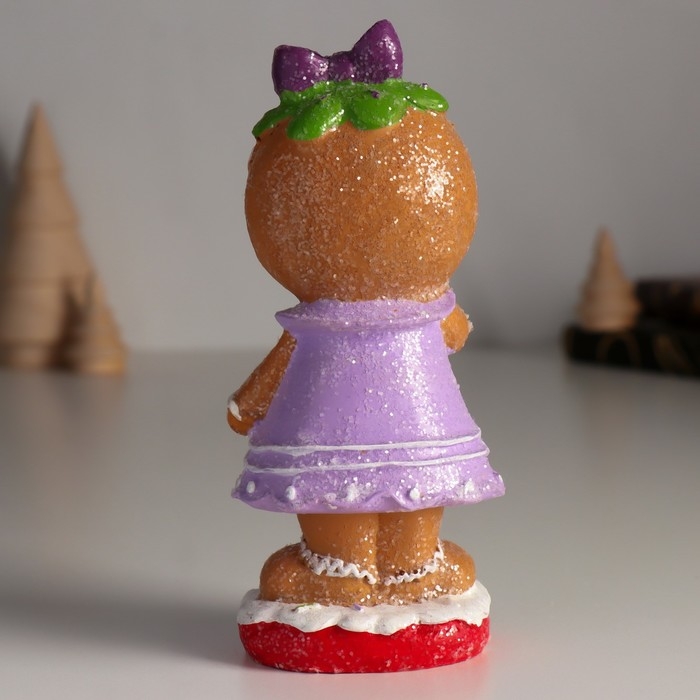 Сувенир полистоун "Пряничка в сиреневом платье, с бантиком" 5,5х6,5х15 см