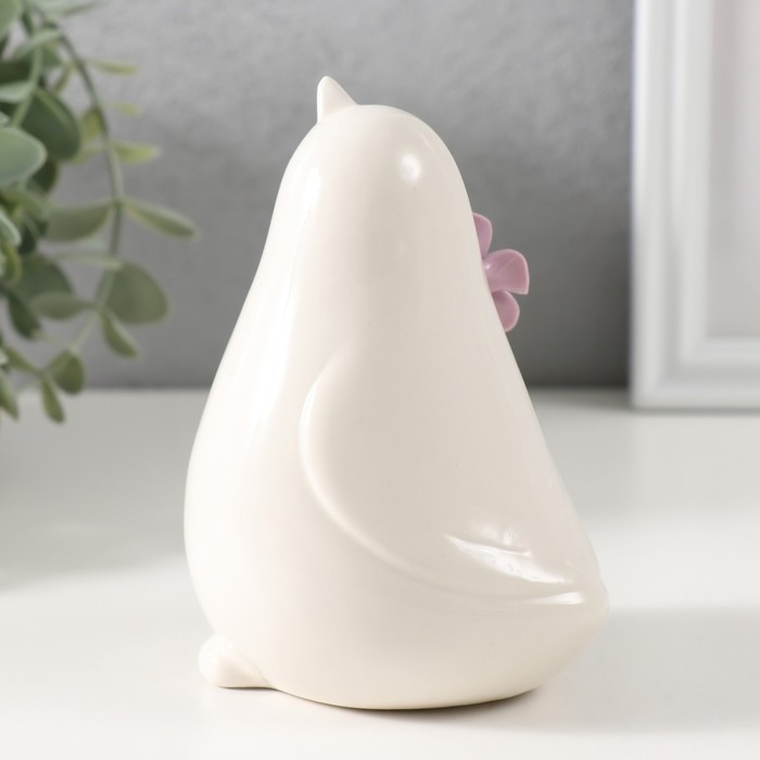 Сувенир керамика "Птичка белая с сиреневым цветочком" 8,7х7,6х11,6 см