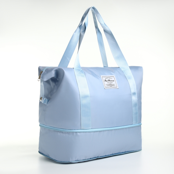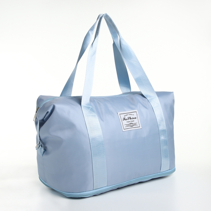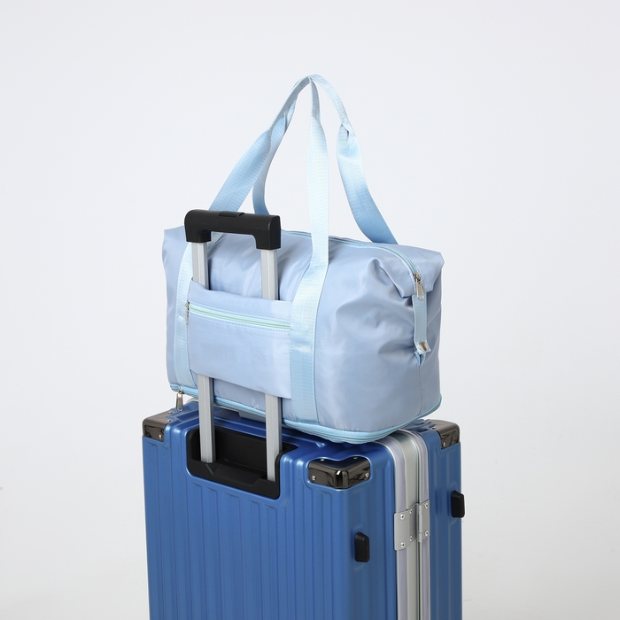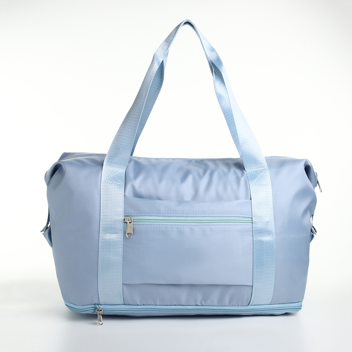 Сумка спортивная на молнии, с увеличением, наружный карман, цвет голубой