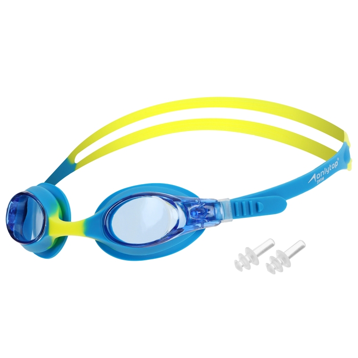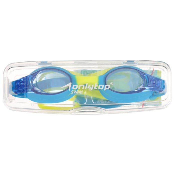 Очки для плавания детские ONLYTOP, беруши, цвет жёлтый/голубой