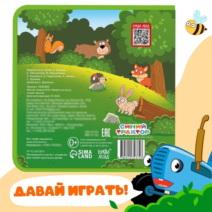 Мягкая книжка EVA «Зверята в лесу», Синий трактор