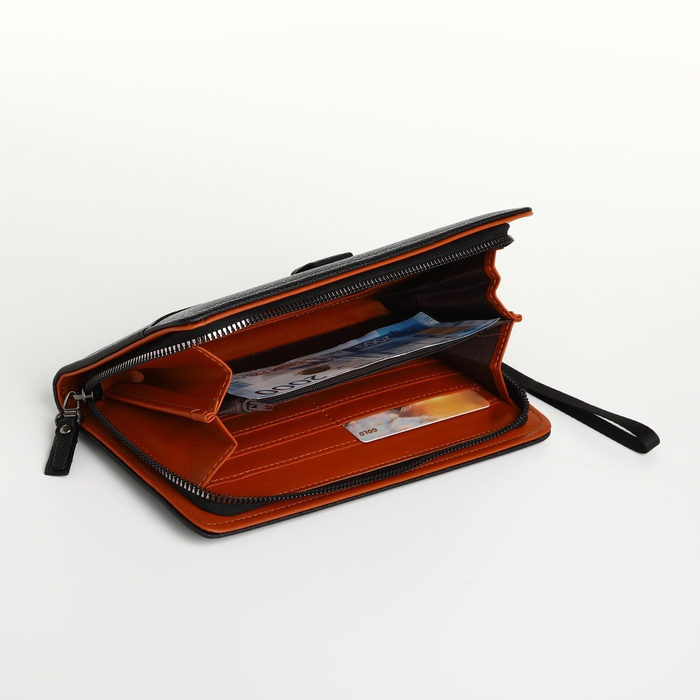 Портмоне-клатч мужской на молнии, цвет чёрный