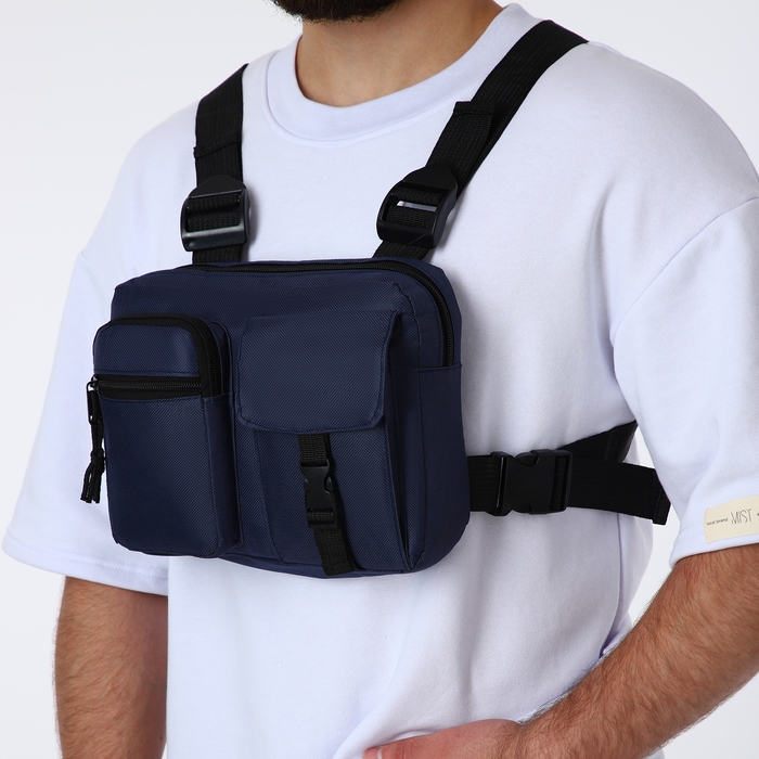Сумка нагрудная на молнии, 2 наружных кармана, цвет синий