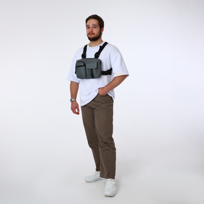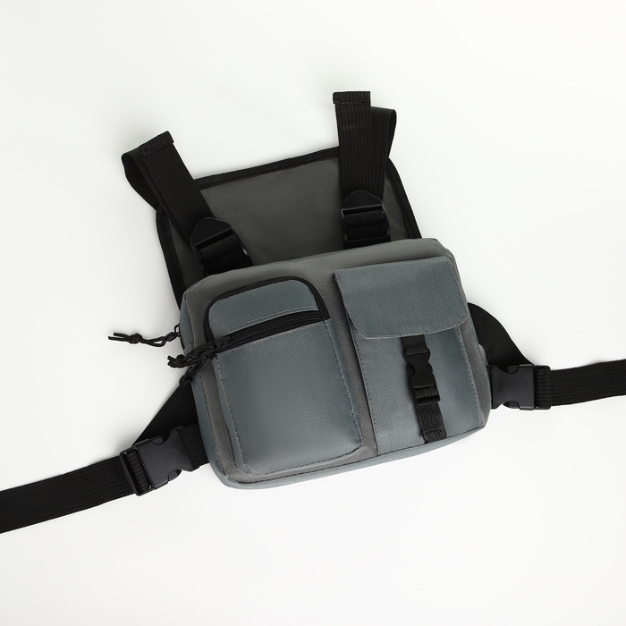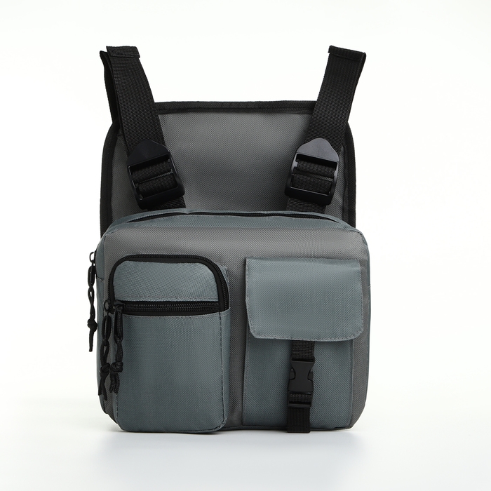 Сумка нагрудная на молнии, 2 наружных кармана, цвет серый
