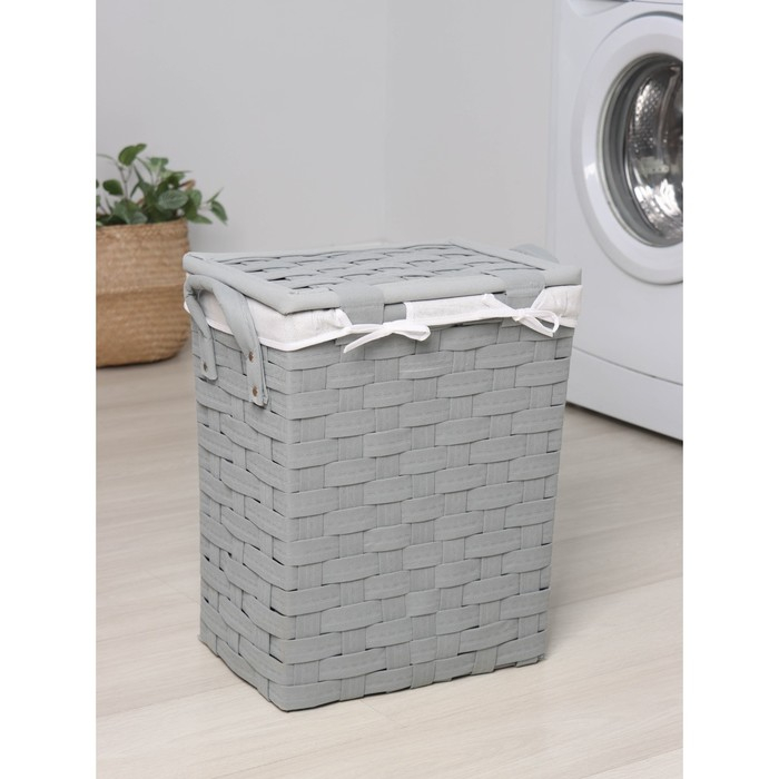 Корзина для белья Доляна «Плетение», с крышкой, 42×27×45 см, цвет серый
