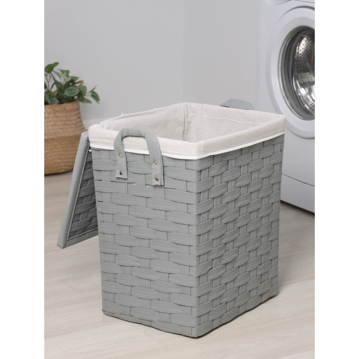 Корзина для белья Доляна «Плетение», с крышкой, 46×34×50 см, цвет серый