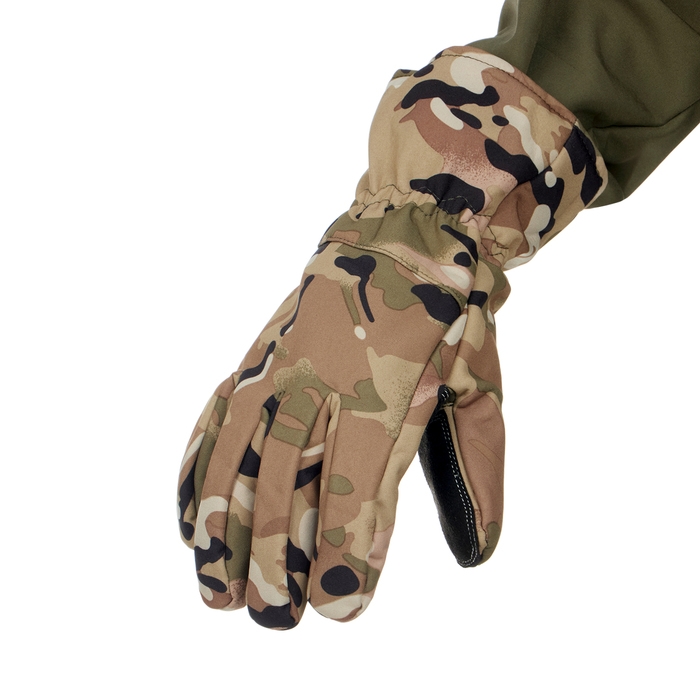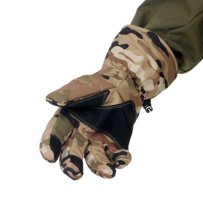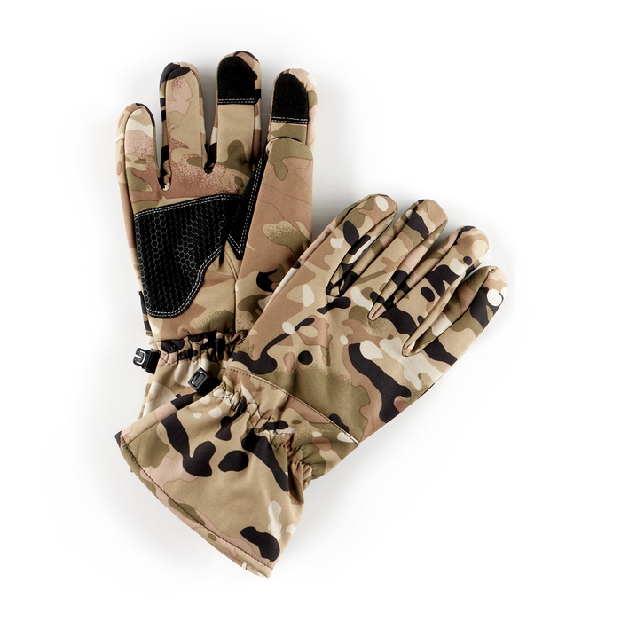 Верхний слой перчаток выполнен из материала софтшелл (Softshell), который широко используется в производстве функциональной одежды для туризма, спорта, охоты и рыбалки. Этот материал сочетает в себе прочность, эластичность, хорошо пропускает воздух и отводит влагу тела, а так же быстро сохнет. Перчатки также оснащены утеплителем из флиса, который сохраняет тепло рук при низких температурах.