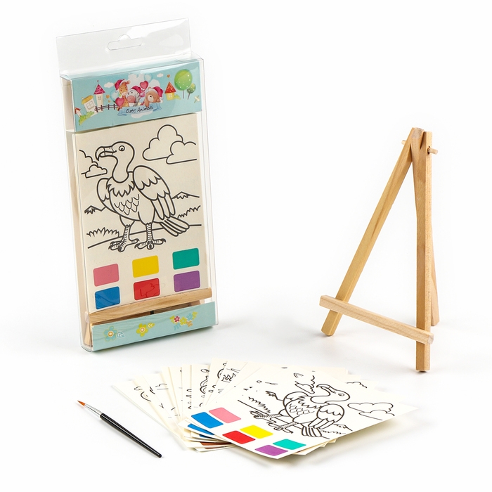 Водная раскраска «Животные», с кисточкой и мольбертом, виды МИКС