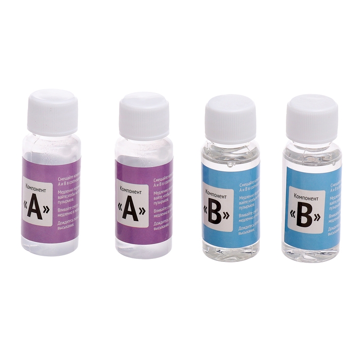 - Смешайте смолу и отвердитель в соотношении 1:1 (по 20 мл каждого вещества).