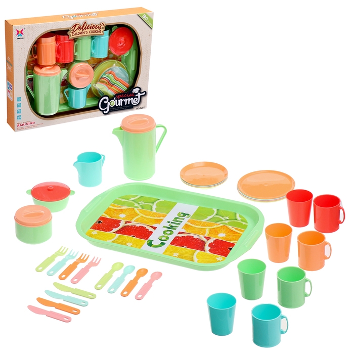 Набор детской посуды «Алиса», с подносом на 4 персоны, 35 элементов