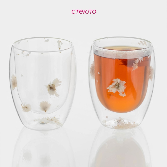 Набор стаканов с двойными стенками «Сухоцвет» — идеальный выбор для любителей чая и кофе. Прозрачный дизайн и нежные сухоцветы делают эти стаканы стильными и элегантными. Они подходят для больших компаний. Двойные стенки обеспечивают теплоизоляцию и предотвращают обжигание рук. Стаканы легко моются вручную и не подходят для посудомоечной машины.
