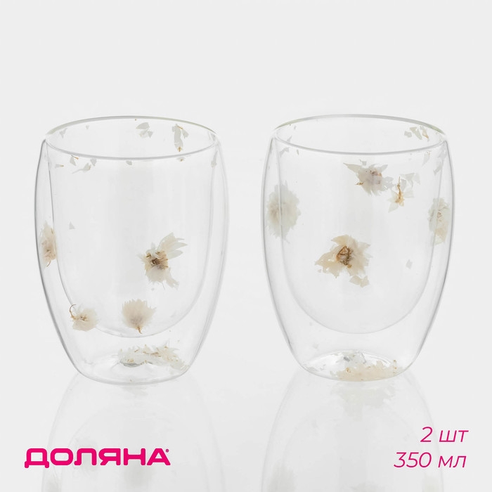 Набор стаканов с двойными стенками «Сухоцвет», 350 мл, 9,5х11,5 см, 2 шт