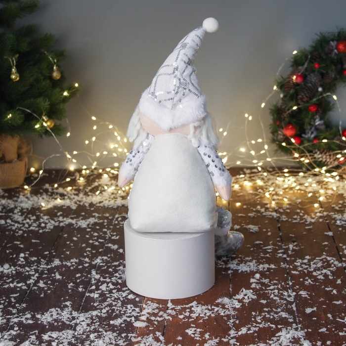 Мягкая игрушка "Дед Мороз в костюмчике с пайетками" 49х17 см, серебристо-белый