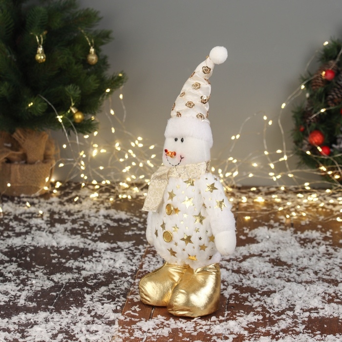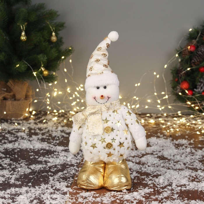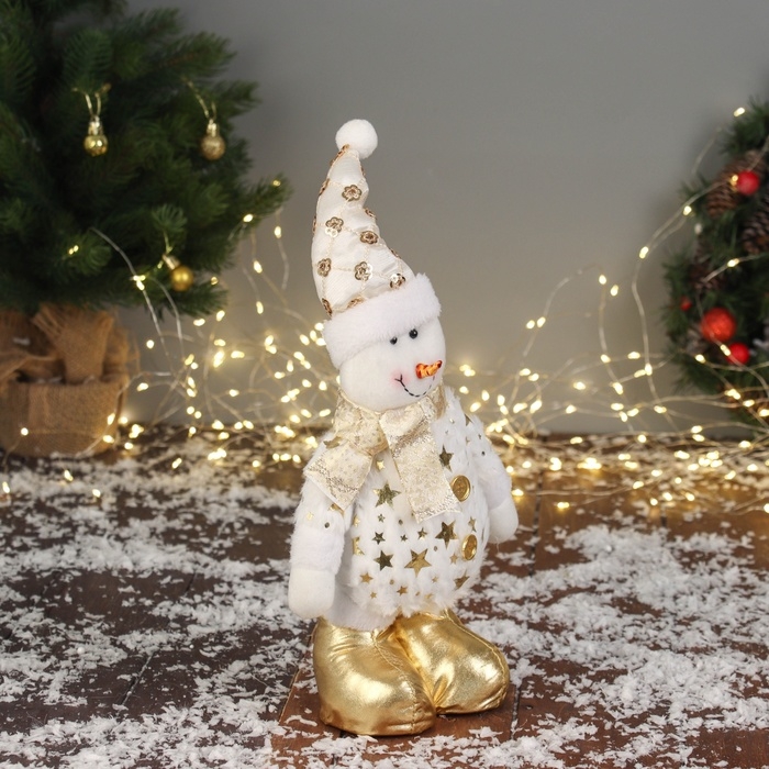 Мягкая игрушка "Снеговик в костюме со звёздами" 36х19 см, золотисто-белый