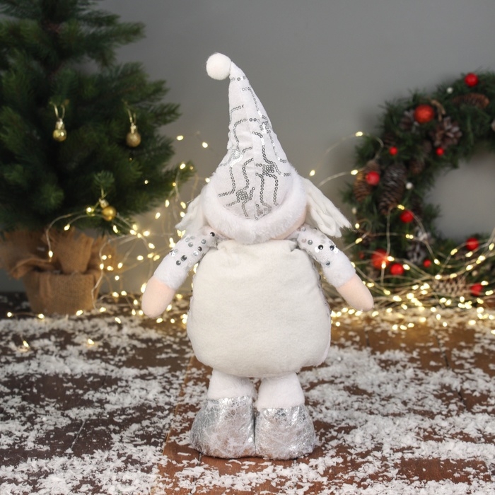 Мягкая игрушка "Дед Мороз блеск" (59х21 см выдвинутые ножки) 40х21 см, серебристо-белый