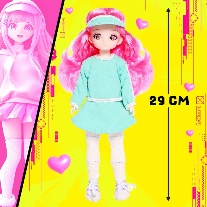 Кукла шарнирная «Крутая малышка» высотой 29 см привлекает внимание своим стильным и ярким образом.