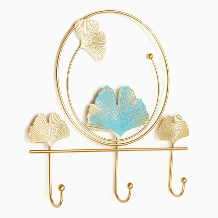 Обладают всеми необходимыми качествами для удобного хранения одежды и аксессуаров. На вешалке можно разместить головные уборы, шарфы или свои любимые предметы. Удобное дополнение, которое поможет вам организовать пространство и добавить характер вашему интерьеру. Каркас изготовлен металла, что делает фурнитуру долговечной и прочной, способной выдерживать значительную нагрузку. Настенная вешалка имеет красивые вставки в виде листочков. Покрашена в элегантный золотой цвет с добавлением бирюзового.