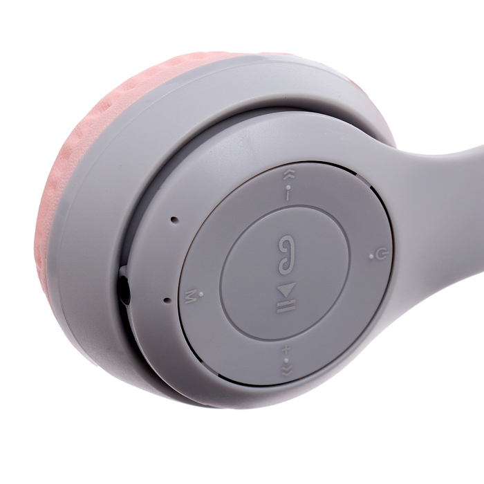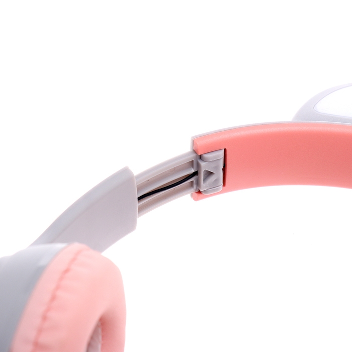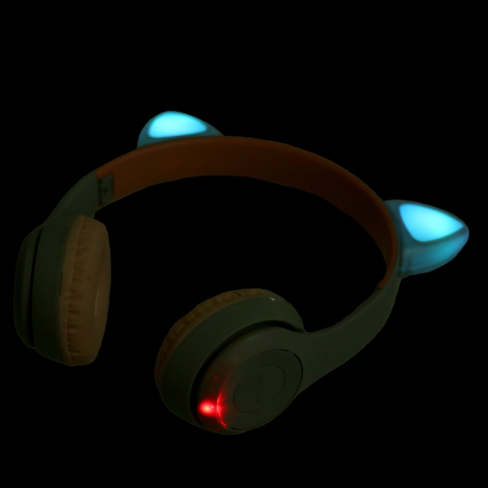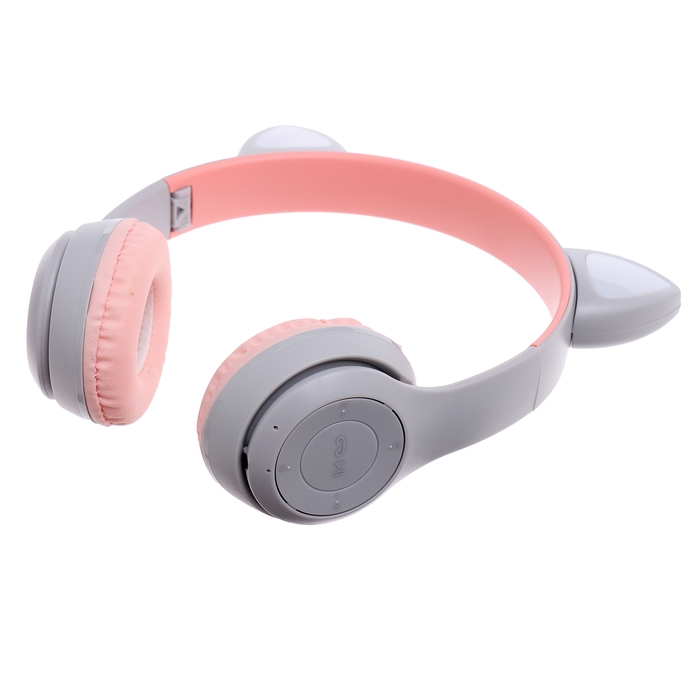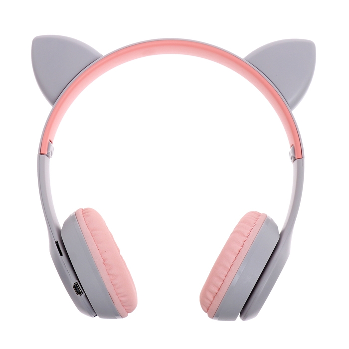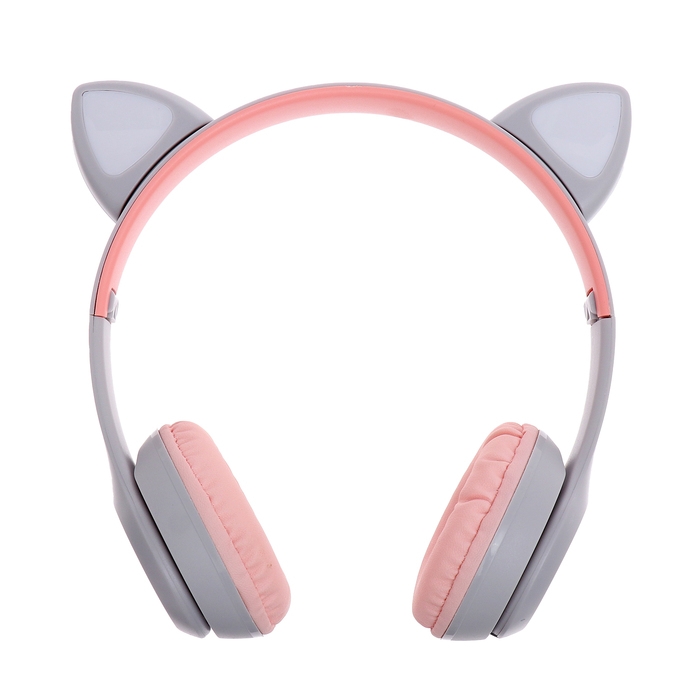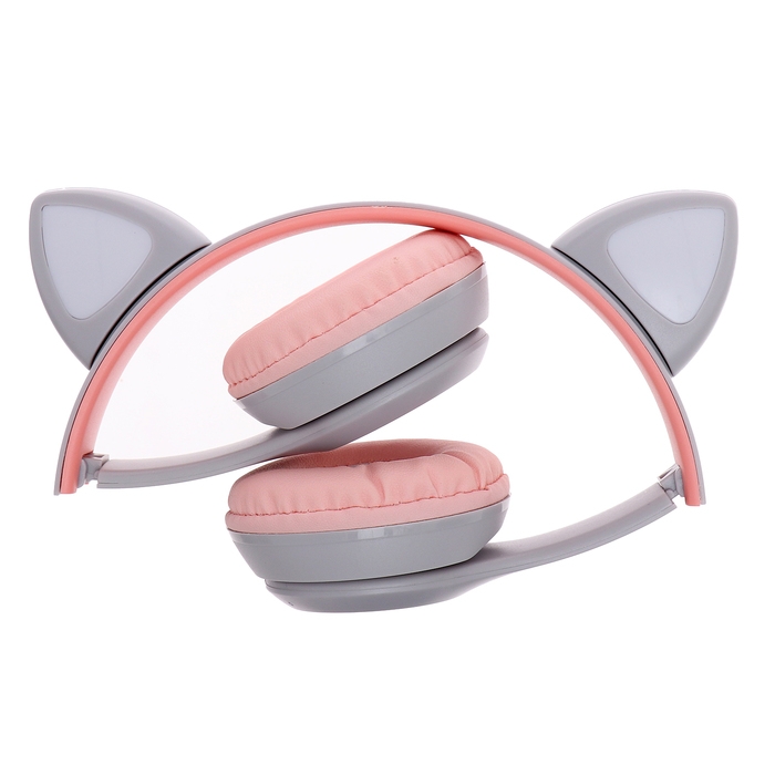 Наушники беспроводные «Котик», звуковые и световые эффекты, складные, цвет серый