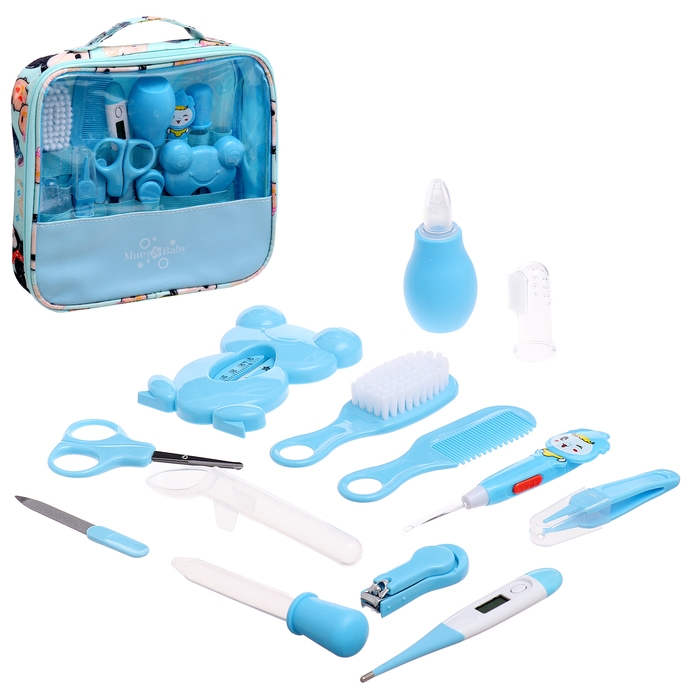 Гигиенический набор по уходу за новорожденным, 13 предметов, цвет голубой