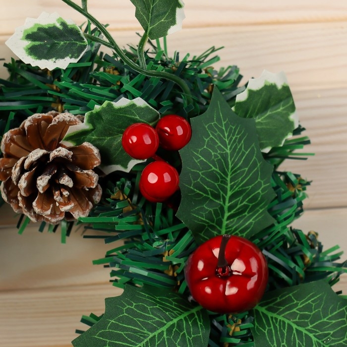Венок новогодний d-30 см "Лесной фестиваль" листья шишки веточки