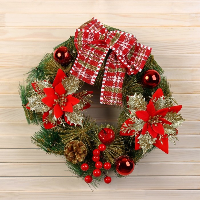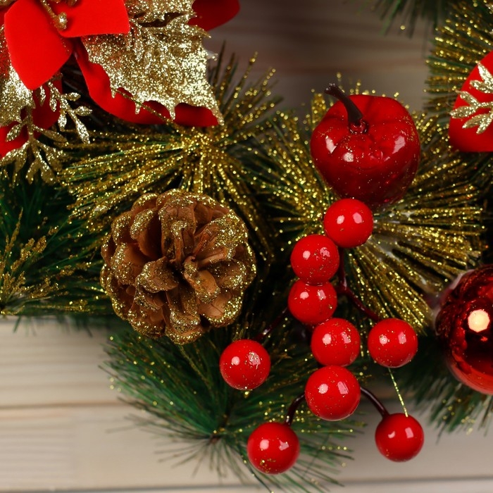 Венок новогодний d-30 см "Яркая сказка" цветы яблоки ягоды шары