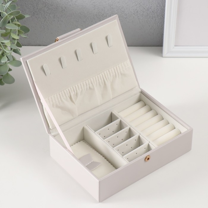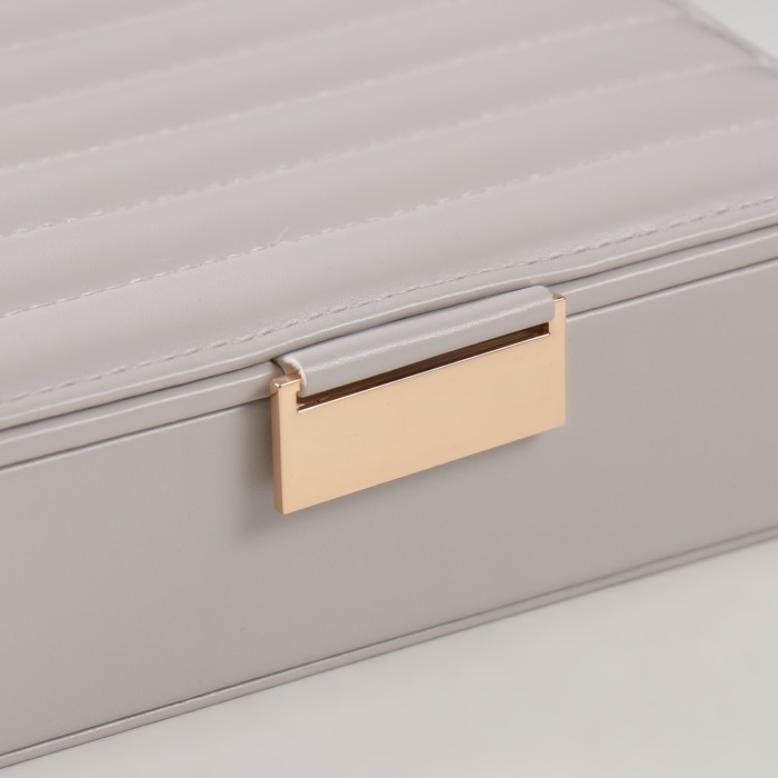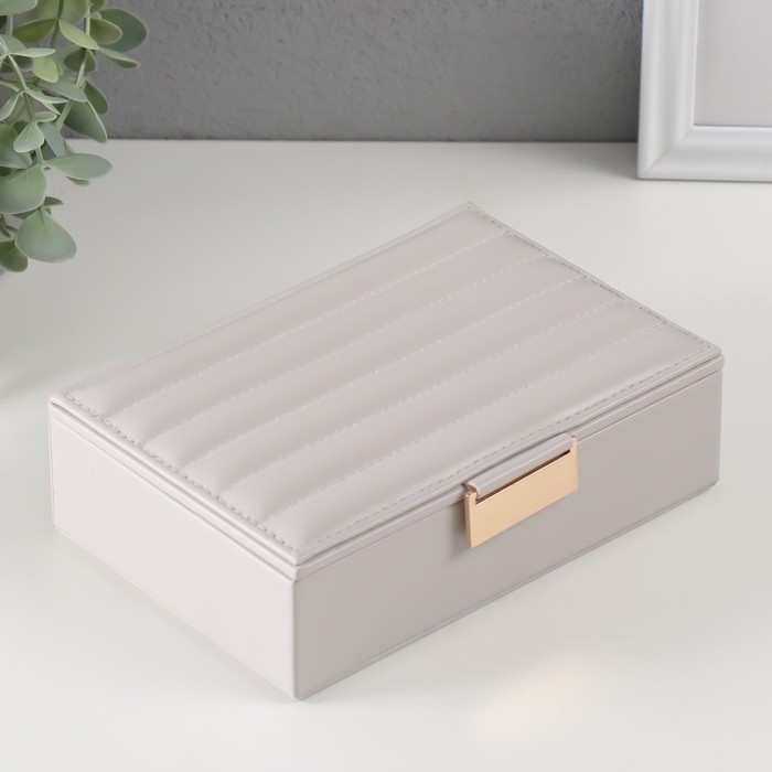 Шкатулка кожзам для украшений "Стёганная. Полоски" серая 13х18х5,2 см