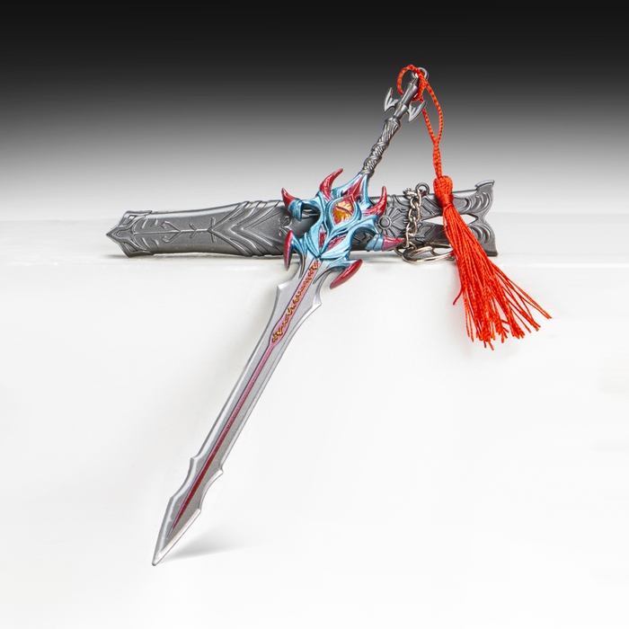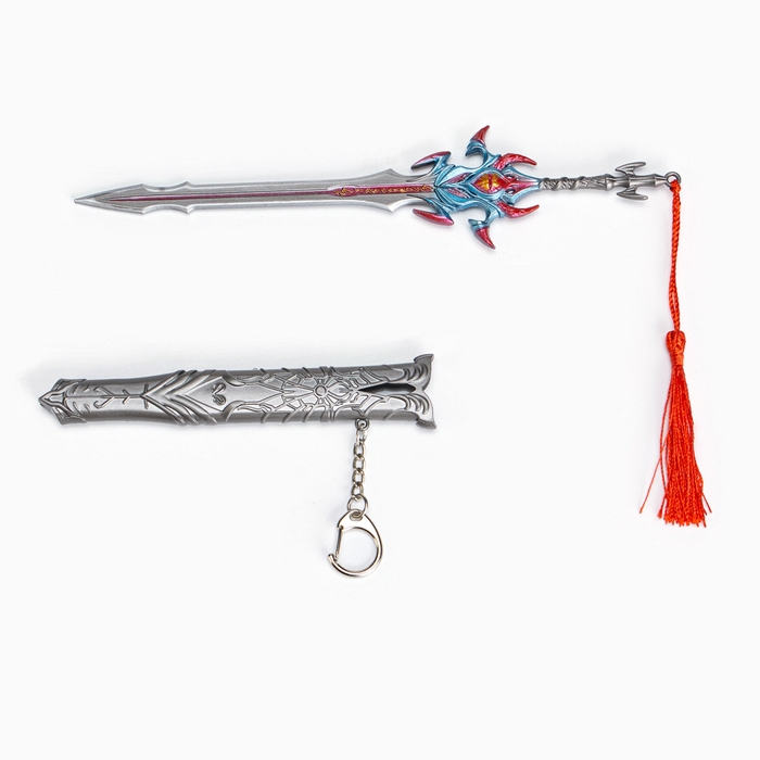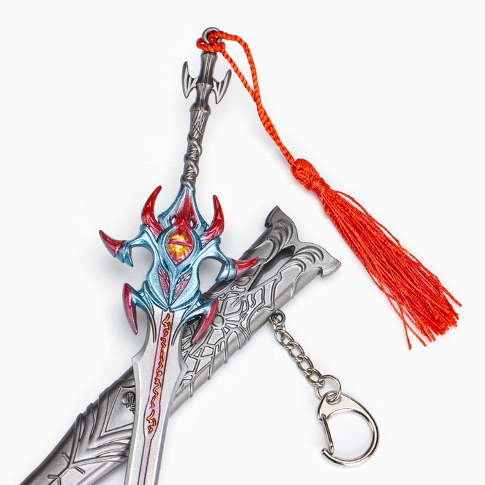 Сувенирное оружие подвесное мини "Меч Асура", брелок, 21 см, серебристый с красным