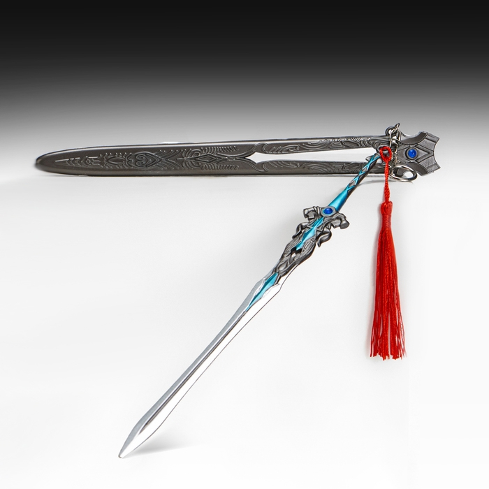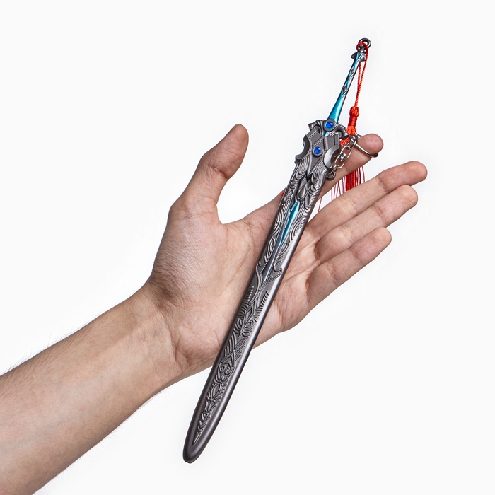 Сувенирное оружие подвесное мини "Меч Арта", брелок, 27 см, серебристый с голубым