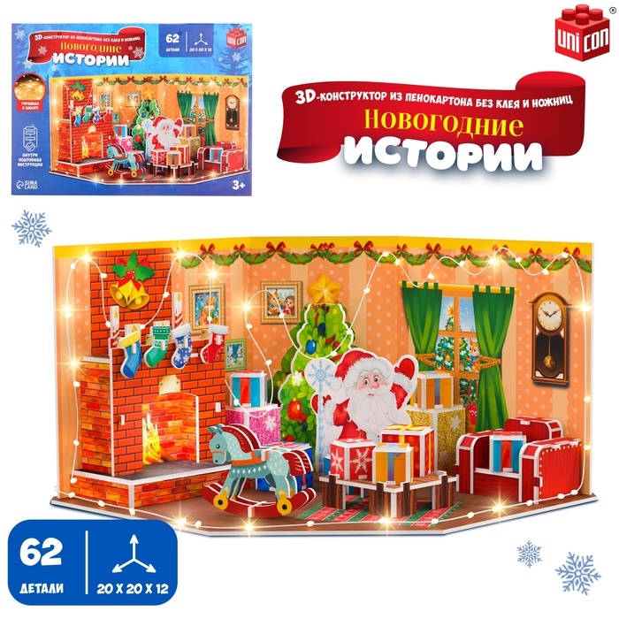 3D Конструктор «Новогодние истории», с гирляндой, 62 детали