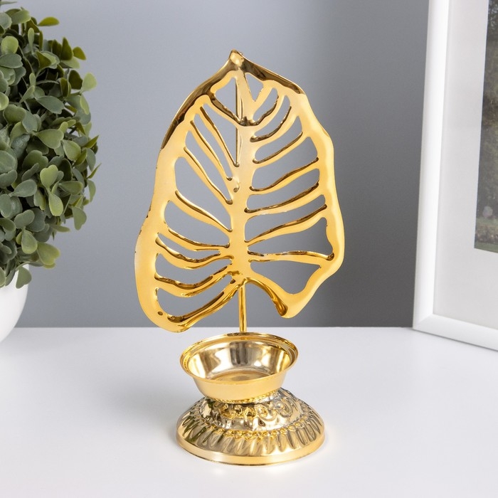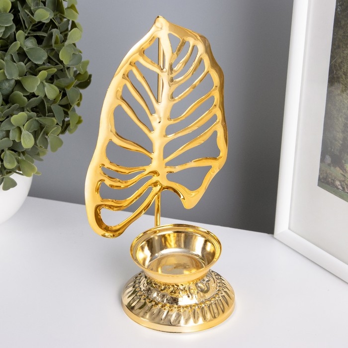 Подсвечник металл на 1 свечу "Пальмовый лист на подставке" золото d=4,7 см 7,5х10,5х20 см