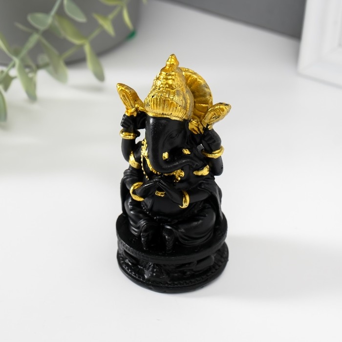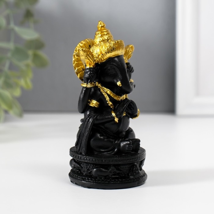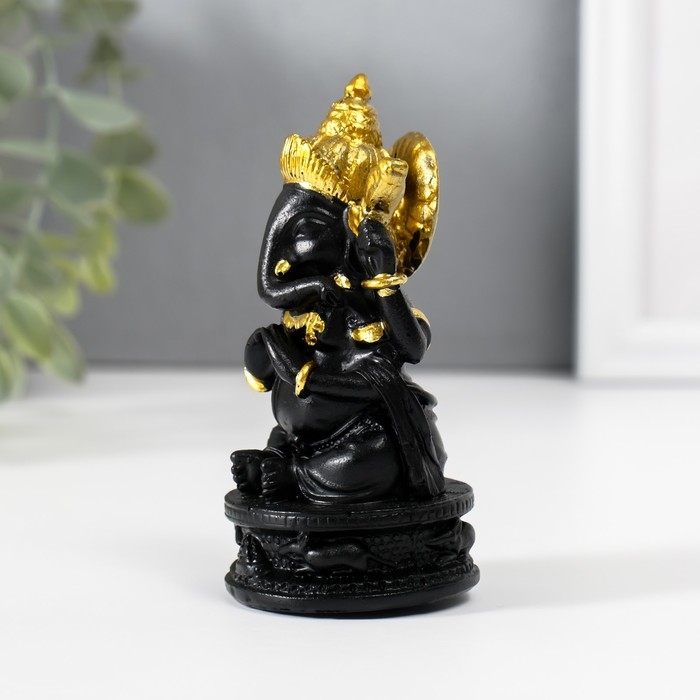 Нэцкэ полистоун "Ганеша в золотом головном уборе" чёрный 4,7х4,7х9,7 см